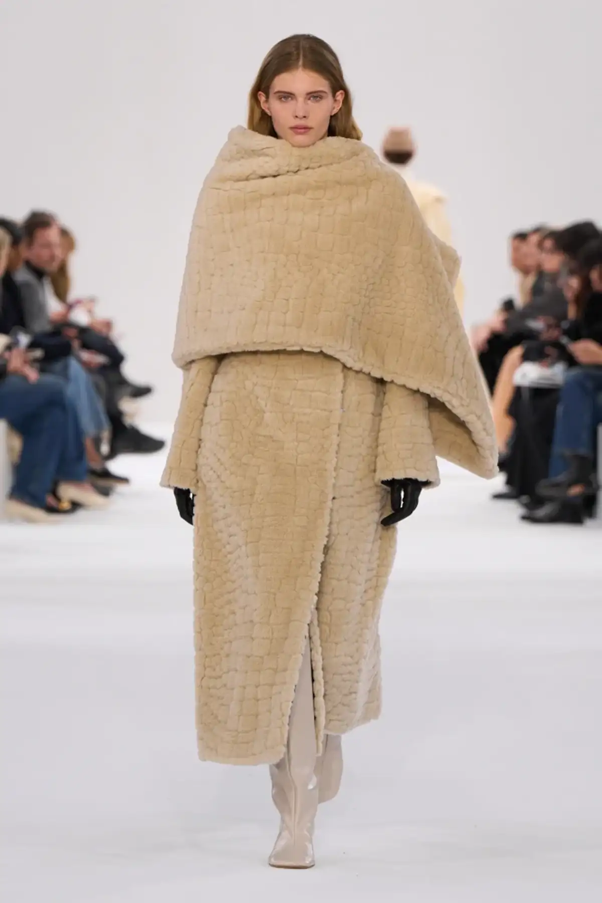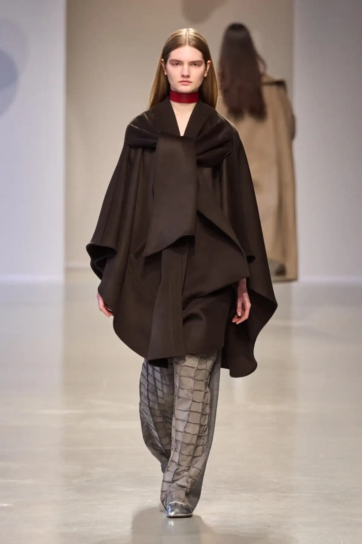 Цього сезону пальта з шарфами стали ідеальним втіленням трендових трансформативних силуетів. Хоча цей елемент гардероба давно відомий, він знову набув неймовірної популярності, ставши обов’язковим у списках бажань багатьох модниць. На подіумах їх представили бренди Costelloe, Niccolò Pasqualetti, Tod’s, задаючи ритм майбутньому зимовому street style.