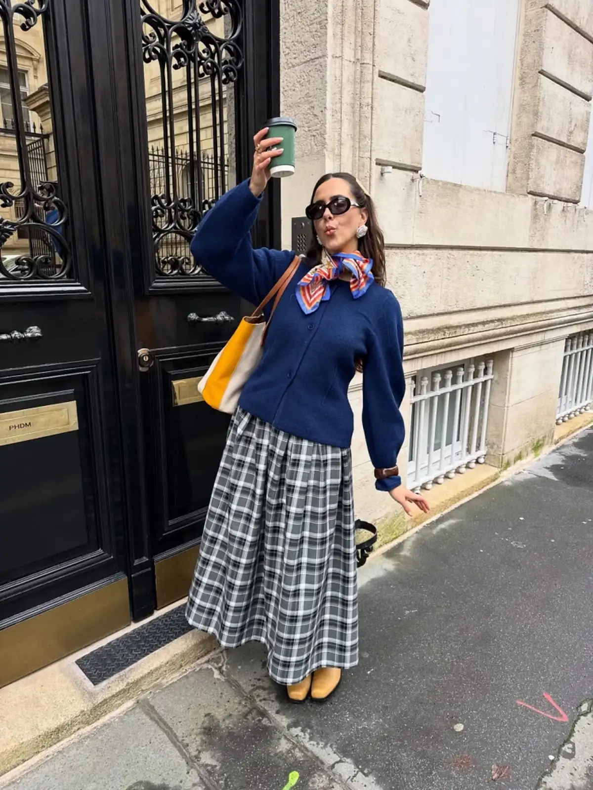 Картата спідниця в поєднанні з кардиганом — це чудовий вибір для осінніх днів. Такий ансамбль додасть твоєму вигляду легкого country-стилю, який завжди в моді.