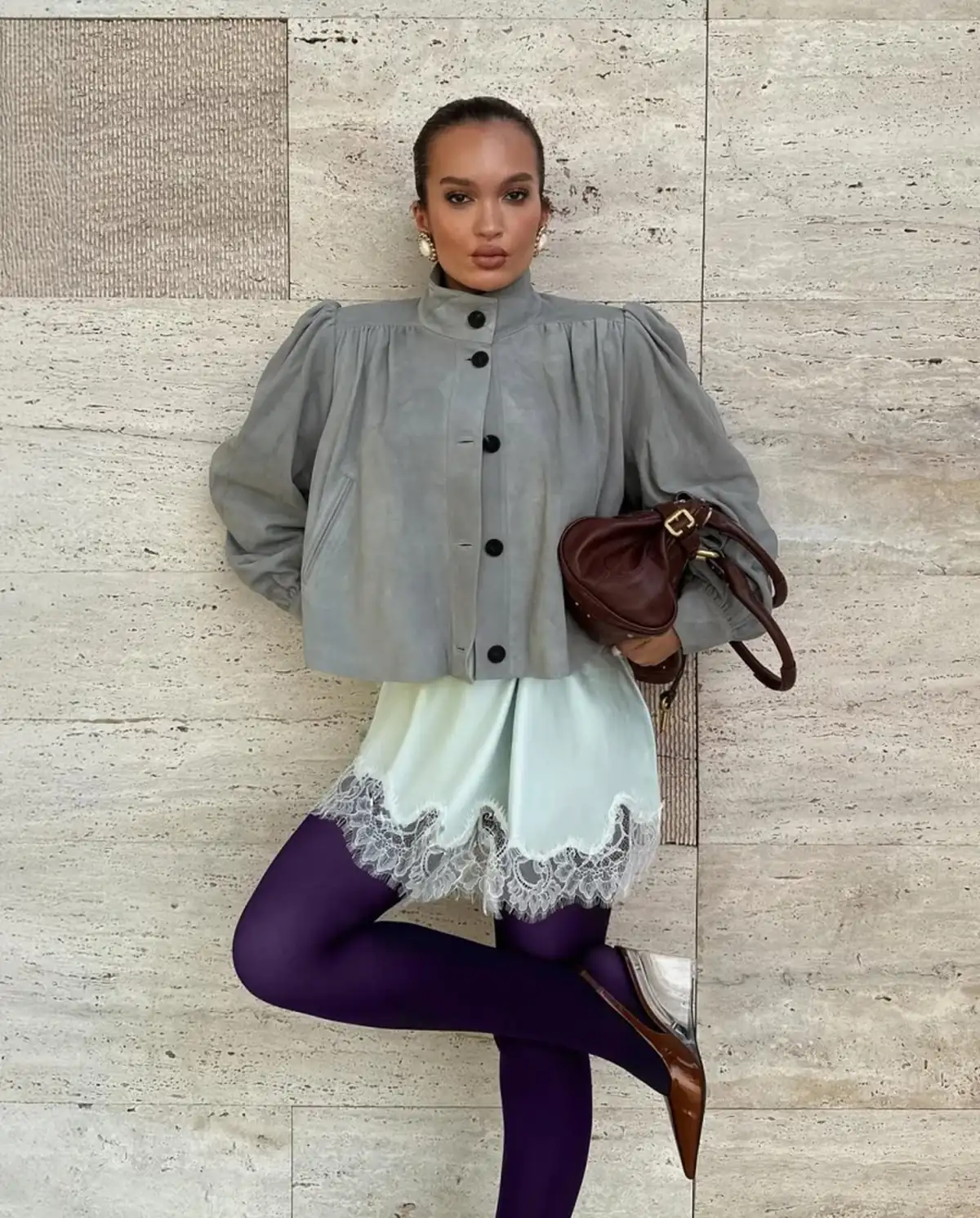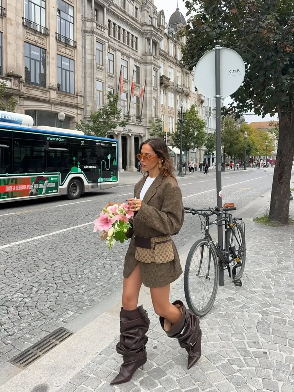 Сукні з костюмної тканини, що нагадують піджак, ідеально підходять для тих, хто полюбляє стриманий casual чи effortless chic. Такий елемент гардероба легко комбінується з пальто або кейпом, а також може залишатися верхнім шаром з мереживною спідницею. Особливо актуальною є комбінація цього айтема з високими чобітьми та стильними капелюшками.